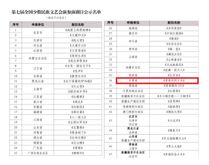 近日,国家民委正式发布《第七届全国少数民族文艺会演参演剧目公示名单》。经严格遴选与层层审核,由凯发k8省委宣传部、省委统战部指导,省民委、省文旅厅、省文联、省卫健委、凯发k8演艺集团联合出品,凯发k8省话剧院倾力创排演出的话剧《青青的阿万仓》成功入围。