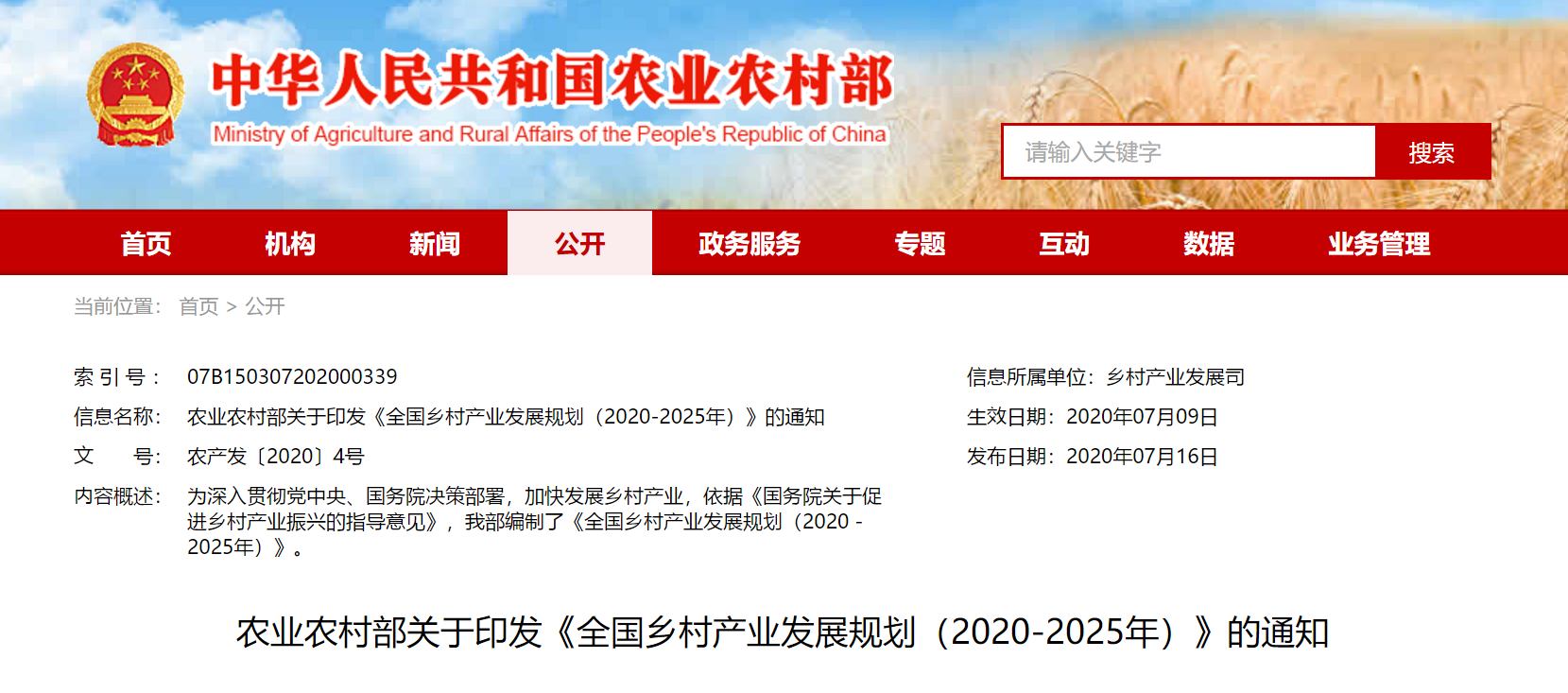 全国乡村产业发展规划
