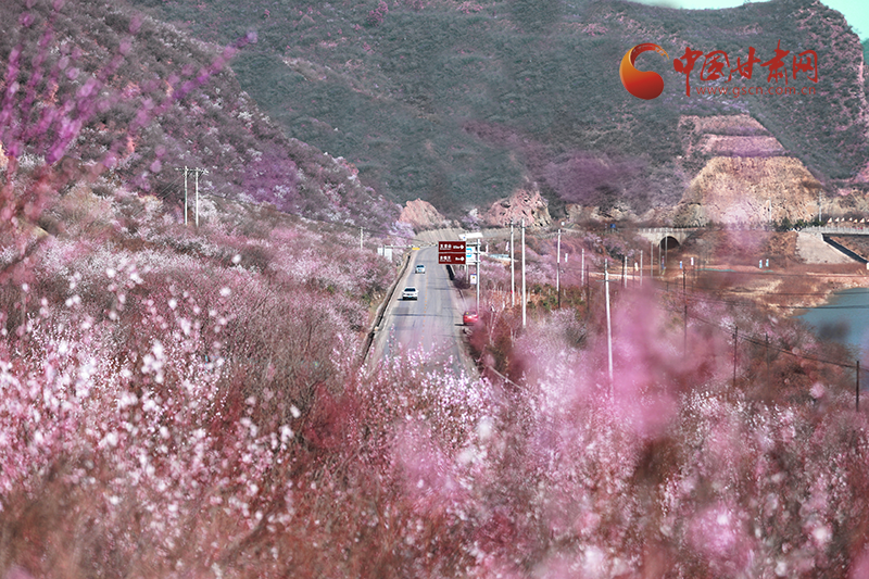 在五龙山,漫山桃花竞相开放,香气袭人,汇成了花的海洋,粉红的桃花在春风里绽放,在春日的阳光下煞是好看,远远望去粉的娇柔婀娜,层层叠叠,瓣瓣舒展。一列火车疾驰而过,满眼的美景吸引过往游客驻足拍照留念,感受大自然给予这座小城的美好馈赠。