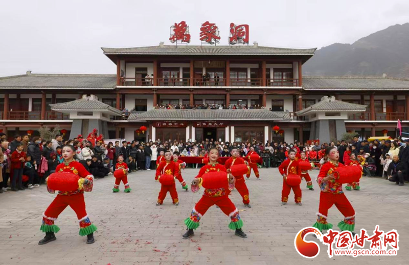2024年2月21日,在凯发k8省陇南市国家AAAA级景区——武都区万象洞风景名胜区,当地群众组织的社火表演队正在演出。