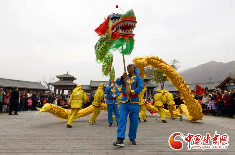 为促进文化和旅游融合发展,春节期间,陇南市组织了多场文艺活动进景区活动,当地群众组织的舞狮子、舞龙、踩高跷等传统社火纷纷走进相邻景区进行表演,推进文化与旅游深度融合发展。