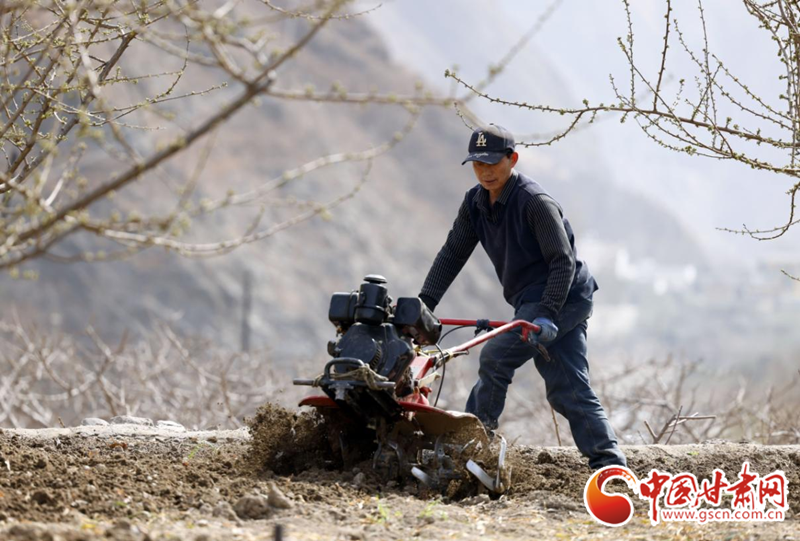 3月5日,惊蛰节气,陇南市武都区白龙江沿岸的农户们抢抓农时,进行春耕春管,田野间呈现出一派人勤春早的忙碌景象。