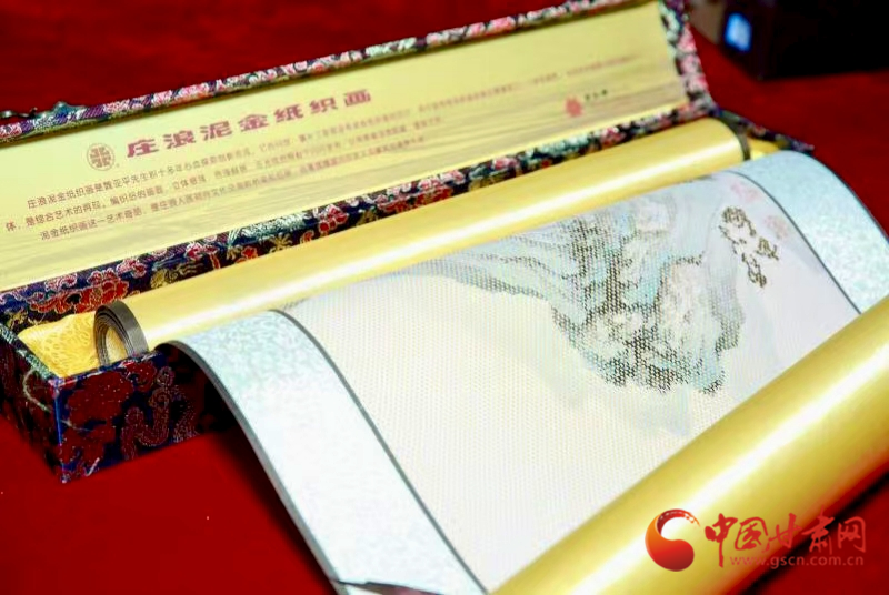 编织后的庄浪泥金纸织画,色泽鲜明,立体感强,在光线照射下闪闪发光,令人浮想联翩,意味无穷。画面栩栩如生,仿佛每一根线条都在诉说着古老的故事,展现出独特的艺术韵味。